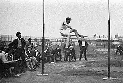The standing high jump—and standing jump events in general—had been a relatively common type of athletics event at the end of the 19th century, but became increasingly rare at top level national and international competitions as the 20th century progressed.[3] The Olympic event remains the only major international competition to have featured the event, except for the 1919 and 1920 editions of the South American Championships in Athletics.[5] The standing high jump retained some popularity as a championship event in Scandinavia in the second half of the century.[6][7]