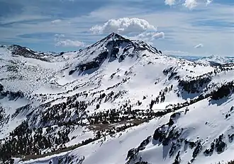 Highland Peak is a prominent 10,936-foot-elevation (3,333-meter) mountain summit located in the Sierra Nevada mountain range, in Alpine County of northern California, United States.[3] It is situated 3.5 miles east of Ebbetts Pass in the Carson-Iceberg Wilderness, on land managed by Humboldt–Toiyabe National Forest. Although it ranks as the 680th-highest summit in California, it ranks 36th-highest of those with at least 500 meters of topographic prominence.[2] Also, there is no higher peak than Highland Peak to the north within the Sierra Nevada. Highland Peak has a subsidiary South Peak (10,824 ft; 3,299 m), with one-half mile separation between summits.[1] The Pacific Crest Trail traverses the western foot of this mountain, providing an approach option. Precipitation runoff from this mountain drains into tributaries of the East Fork Carson River. . Topographic relief is significant as the summit rises over 2,900 feet (884 meters) above Noble Canyon in 1.6 mile (2.6 km).