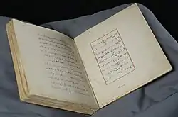 | Size | ≈ 19.5 cm × 15.5 cm (7.7 in × 6.1 in) Ms. A (Cod. Or. 1954) 21 cm × 16.5 cm (8.3 in × 6.5 in) Ms. B (Cod. Or. 1983) 21.5 cm × 35 cm (8.5 in × 13.8 in) Ms. C (Katalog ID: 219142) |