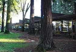 In 1925, the library had a circulation 19,445 and a total of 4,855 volumes.[7] Total fines charged that year were $92.28, while expenses totaled about $250 for the year to maintain the grounds, pay for heating, and pay for water and electricity.[7] The Friends of the Library group was started on February 6, 1968.[8] In May 1971, this group began campaigning for a new library building, including paying some of the early costs for designs, with voters later approving a bond measure to pay for the new facility.[8] On January 21, 1975, a new library opened to replace the Carnegie building, located at Shute Park.[3] The new building was designed by Martin, Soderstrom & Matteson.[8] Circulation at the library totaled about 130,000 in 1975 with around 40,000 books.[7] The year after the Shute Park location opened a library was opened in the Tanasbourne area on the east side of Hillsboro. In 1990, the city took over those operations, moving it in 1996 from the former Tanasbourne Mall location.[9]