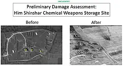 Both sites were destroyed during the April 2018 strike, which was led by the United States with British and French participation.[2][3] The U.S. military said following the airstrikes that the Him Shinshar complex was "completely destroyed" in the airstrikes.[3]