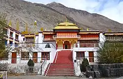 It was found by Changzem Tserab Zangpo during 14th century. It belongs to the Gelugpa school of Vajrayana Buddhism. During the 17th century, the monastery was heavily damaged and later reconstructed. References : "The Himalayan Masters: A Living Tradition" by Pandit Rajmani Tigunait, published by Himalayan Institute Press in 2018. "The Development of Monasteries in Ladakh" by Mariko Namba Walter, published in the Journal of Asian Humanities at Kyushu University in 2012. |