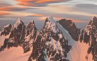 Himmelhorn is a 7,880+ ft (2,400+ m) mountain summit located in the remote and rugged Picket Range within North Cascades National Park in the state of Washington. The peak lies 0.7 mi (1.1 km) west of Mount Terror and the small Mustard Glacier lies on its northern slope.[1] The first ascent of Himmelhorn was made on September 8, 1961, by Ed Cooper, Glen Denny, Joan and Joe Firey, and George Whitmore.[3] Originally called Himmelgeisterhorn, Himmelhorn means Horn of the Sky Spirit.[3]