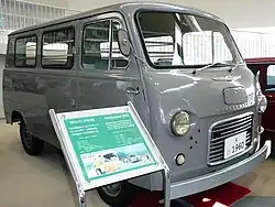 The Briska was introduced in March 1961 at exhibitions in 32 cities across Japan.[3] Called the FG10, it used a Hitachi-Stromberg carburetor on a modified version of the Contessa's engine, itself derived from that of the Renault 4CV. In March 1962, the Briska lineup added a longer version with a second bench seat for rear seat passengers. This was coded FG20P and was also available in a glazed van version ("Light Van"), called FG20V.[4] The Briska was built under contract by Mitsui Seiki rather than by Hino themselves from the beginning.