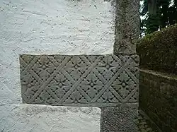 In an inscription at the base of the tower, which is supposed to have been still visible in the 1840s, the year of construction was give as 1106. The oldest part of the church, the nave, dates to this period, as manufacturing marks on several of the stones in the wall show. In the outer walls, Roman spolia were used. On the west side the ashlars have decorative marks. The windows on the south side date to the 16th century. They were added in 1507 along with the west portal.