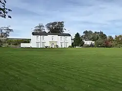 The estate of Bydown, within the parish of Swimbridge, was in ancient times owned by the Mayne and Chichester families.[21] The surviving Bydown House is a grade II* listed[22] country house built by the Nott family in 1798 as the surviving datestone states,[23] or between 1820–30 as Pevsner suggests.[24] It was described by Pevsner as "a trim neo-Grecian mansion in a small park with two immaculate white stucco fronts".[25] Between the lower storey windows is a small inscribed tablet inscribed "1759, J Nott", with the arms of Nott, reset on the new house.[26] It remained in the ownership of the Nott family until about 1925.[27]