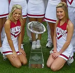 Missouri head coach Frank Broyles was hired as the Razorbacks head football coach in 1957 and served in that position for 19 years.[33] Arkansas would grow into a national power with Broyles at the helm, including several conference championships and a national title.[34] Arkansas would earn a share of the 1959 SWC Championship, splitting with Texas.[35] Arkansas lost only to No. 3 Texas and No. 6 Ole Miss during the season.[36] The Hogs went to Jacksonville and defeated Georgia Tech in the 1960 Gator Bowl 14–7, avenging an earlier Cotton Bowl Classic defeat.[37] Barry Switzer was a co-captain on the team.[38] Some, including University Chancellor and student during 1958, John White,[39] view the Razorback football team during this period as a revival of Arkansas, which was recovering from the Little Rock Nine and racial segregation problems.[39]