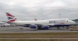 British Airways Boeing 747-400 in Oneworld livery at Heathrow Airport