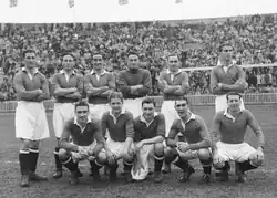 To capitalise on the 1930 promotion, the club spent £25,000 ($49,000) on three big-name players: Scots Hughie Gallacher, Alex Jackson and Alec Cheyne. Gallacher in particular was one of the biggest talents of his era, known for his goalscoring and for having captained Newcastle to a championship in 1926–27. He and Jackson had also been members of the Wembley Wizards team (as had Law), the Scotland team which beat England 5–1 at Wembley in 1928.