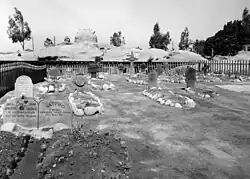Ghost Town is the original part of today's enclosed Knott's Berry Farm amusement park. It was built by Knott as his tribute to the pioneers, which included his own grandparents who came west on a wagon train, bringing with them their young daughter, who was Walter Knott's mother.[23][24][25][26] Ghost Town includes most of the buildings he brought to the property or constructed in the 1940s and 1950s. Most of the buildings on Main Street were completed in late 1940 or early 1941. Most of the rest of Ghost Town was completed over the next decade and a half.[27]