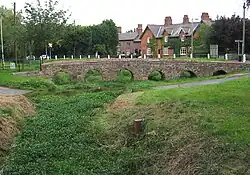 The Anglo-Saxons were not road makers but the paths and tracks which connected their villages with those nearby form the basis for the modern road system. There are some green tracks in the county of probable Anglo-Saxon origin which are also followed by parish boundaries (these are often called "The Mere", mere meaning boundary). One of these runs from Countesthorpe towards Gilmorton and another, long known as "The Old Mere", from the Wigston Magna - Newton Harcourt road nearly to Houghton on the Hill. In the 13th and 14th centuries various fairs and markets were established in some of the villages; those that prospered led to the villages becoming market towns. Between fair and market towns roads became established and communication was also aided by the building to bridges. Most of the medieval bridges of the county outside Leicester were built in the second half of the 13th century or very early in the 14th. None of these early stone bridges survives but there are some later ones in existence at Aylestone, Anstey, Enderby Mill (the road to it was diverted away when turnpikes were built) and Rearsby. These are of uncertain date but probably not earlier than the 15th century.[10]