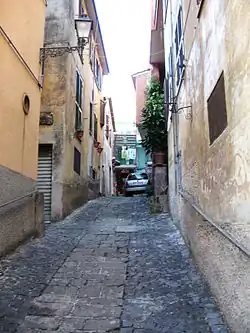 On July 14, 1837 at a meeting of the town council a decision was made to prohibit the transit, by means of a chain stretched in the middle of the road, of wagons coming from Rocca di Papa along the present-day via di Capo d'Acqua, between the localities of San Rocco and Capo Croce.[97] This resolution was made following the observation that the road had been much ruined by the continuous transit of heavy wagons coming mostly from neighboring Rocca di Papa.