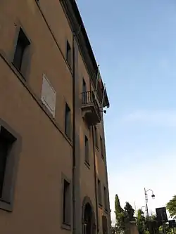 In the late Middle Ages the village expanded progressively southeastward along the peperino hill on whose summit -373 m a.s.l., today Piazza Giacomo Matteotti- the Frangipane family had a four-sided fortress built, demolished at an unspecified time and of which three round towers remain incorporated in the surrounding buildings. The new expansion corresponds to the present districts of Santa Lucia and Coste, and was traversed by the important thoroughfare of Via Santa Lucia and Via Posta Vecchia: the denomination of the latter street denounces that most likely this was originally the route of the courier and postal route between Rome and Naples, which passed through Marino until the 1780s.[36]