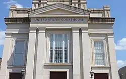 In 2007, a United States Courthouse was opened, after renovating a historic hall for changed use. Part of the old hall had a Jim Crow-era monument to the local men and women from Natchez and Adams County who served in World War I. The 1924 monument was the subject of several stories in the Natchez Democrat, as reporters noted it lacked representation of black Army troops who had served in the war. A 2010 article suggested updating the monument to reflect all the local troops, and retiring the old monument.[76] On November 10, 2011, new plaques were installed that include the names of 592 African-American soldiers and 107 white soldiers, none of whom had been listed on the old plaques.[77]
