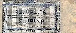 The Philippine Republic of 1898 under General Emilio Aguinaldo issued currency backed by the country's natural resources. Two types of two-centavo copper coins were struck at the Malolos arsenal and one and two peso paper notes hand signed by Pedro Paterno, Mariano Limjap and Telesforo Chuidian were printed and freely circulated. These were withdrawn from circulation and declared illegal currency after the surrender of General Aguinaldo to the Americans.[10]