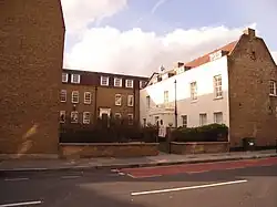 While strictly speaking not properly part of Stroud Green, Womersely House, close by the St Peter-in-Chains catholic church, has already been noted as home to the Turner family, prominent local landowners in the late 19th century, who had previously occupied Stapleton Hall. By the early 20th century however it was a hostel for single working women.[47] It occupied a plot of land bordered by Elm Grove and Womersley Road, and had been demolished by 1947 as can be seen on various RAF aerial survey photos on the Historic England website.[29] The site is currently (March 2008) being re-developed.
