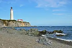 The Louisbourg Lighthouse was the first lighthouse in what was to become Canada (and the second in North America after the 1716 Boston Light).[1] It was constructed at the French fortress of Louisbourg on Cape Breton Island in 1734, patterned after the 1682 Phare des Baleines at Saint-Clément-des-Baleines. The Louisbourg Lighthouse was destroyed by British troops during the siege of 1758, and rebuilt in 1842; the rubble of the original tower is visible at the base of the current lighthouse, which dates from 1923.