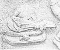 Henri Breuil surveyed the Trois Frères caves in France and made an engraving that attempted to reproduce a c. 13,000 BC cave painting into a black-and-white lithograph engraving.[4] His engraving showed a mysterious figure, a "man camouflaged to resemble a bison", in the midst of a mass of herd-animals, "herding the beasts and playing the musical bow".[4][5][6] The artwork is confused, and those who are trying to reproduce the art in color have had to work to bring out legible images.[5][6] One interpretation of the "magician-hunter" image considers his hunting-bow to be a musical bow, used as a single-stringed musical instrument.[6][7]
