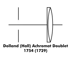 In 1817 Carl Friedrich Gauss improved the Fraunhofer telescope objective by adding a meniscus lens to its single convex and concave lens design. Alvan Clark further refined the design in 1888 by taking two of these lenses and placing them back to back. The lens was named in honour of Gauss. The current design can be traced back to 1895, when Paul Rudolph of Carl Zeiss Jena used cemented doublets as the central lenses to correct for chromatic aberration.