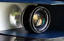 Today's photographic lens state-of-the-art is apochromatic correction, which is, very roughly, twice as strict as anastigmatic.[25] However, such lenses require correcting for higher ordered aberrations than the original seven[26] with rare earth (lanthanum oxide) or fluorite (calcium fluoride) glasses of very high refractive index and/or very low dispersion of mid-twentieth century invention.[1]: 79 [27][28] The first apochromatic lens for consumer cameras was the Leitz APO-Telyt-R 180mm f/3.4 (1975, West Germany) for Leicaflex series (1964, West Germany) 35mm SLRs.[2]: 781 Most professional telephoto lenses since the early 1980s are apochromatic.[29][30] Note, better-than-apochromat lenses are available for scientific/military/industrial work.[31]