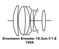 With anastigmat image quality achieved, attention next turned to increasing aperture size to allow photography in lower light or with faster shutter speeds. The first common very wide aperture lens suitable for candid available light photography was the Ernemann Ernostar (Germany) of 1923.[44] Ludwig Bertele's formula was originally a 10 cm f/2 lens, but he improved it to 10.5 cm and 85mm f/1.8 in 1924.[45] The Ernostar was also a Cooke Triplet derivative; it has an extra front positive element or group.[1]: 112