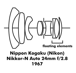 - ^ Oshita, Kouichi. "The First Lens equipped with the Close-Range-Correction Mechanism: Tale 14: NIKKOR-N Auto 24 mm f/2.8". Archived from the original on 2009-04-13. Retrieved 28 February 2006.