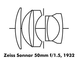Bertele continued Ernostar development under the more famous Sonnar name after Ernemann was absorbed by Zeiss in 1926. He reached f/1.5 in 1932 with the Zeiss Sonnar 50mm f/1.5[47][48] for the Contax I 35mm rangefinder camera (1932, Germany).[49]