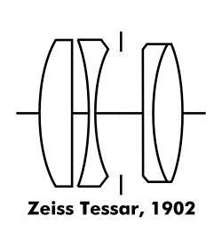 The quintessential twentieth century photographic lens was the 1893 Taylor, Taylor & Hobson Cooke Triplet.[32] Harold Taylor's (UK, not related to the Taylors of T, T & H) Cooke Triplet was a deceptively simple looking asymmetric three element anastigmat formula created by reexamining lens design from first principles to take maximum advantage of the advances in new Schott optical glasses. The elements were all of such strong power that they were highly sensitive to misalignment and required tight manufacturing tolerances for the era.[33]