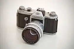 The Tessar was the standard high-quality, moderate-aperture, normal-perspective lens of the twentieth century. The Kodak Anastigmat Special 100mm f/3.5 on the Kodak Super Six-20 (1938, USA), the first autoexposure still camera, was a Tessar,[36] as was the D. Zuiko 2.8 cm f/3.5 on the Olympus Pen (1959, Japan), the original Pen half frame camera;[37] the Schneider S-Xenar 40mm f/3.5 on the late version of the Rollei 35 (1974, West Germany/Singapore);[38][39] and the AF Nikkor D 45mm f/2.8P Special Edition for the Nikon FM3A (2001, Japan), the last manual focus 35mm SLR released by a major maker.[40] It was fitting that the Zeiss Stiftung's last camera, the Zeiss Ikon S 312, had a Zeiss Tessar 40mm f/2.8 (1972, West Germany).[41]