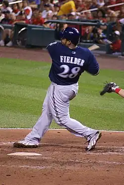 ESPN.com's lead story on August 29 stated: "... Then there are the Brewers. The strange, impossible-to-figure-out Brewers. They once had the best record in the majors, were 14 games over .500 twice, and led the division by as many as 8½ games on June 23. Since then, and there's no nice way of saying it; they've reeked."[6] The Brewers cast this negativity to the side, and rebounded in September. Despite poor performances from the usually steady Chris Capuano and more nagging injuries to Ben Sheets, the Brewers found themselves in a heated pennant race with Chicago's North Siders. The team's playoff drive took a hit late in the year, however, losing three of four games in a crucial series in Atlanta, dropping the Brewers to a season-high 3.5 games out of first. The Brewers won the first two games of their final homestand of the season to pull within two games of the Cubs, but faced a near impossible task with the club's elimination number down to only three and the wild card leading Padres coming to town. The club played well, but the Cubs clinched on the final Friday of the season. On September 29 the Brewers beat Padres 4–3 in extra innings to secure a winning season. The game was tied in the ninth inning by a triple by Tony Gwynn Jr. in a highlight reel play that was repeated often during the 2007 post season. That win, and the win the next day, by the Brewers kept the Padres from advancing to the playoffs. The irony, of course, being that Gwynn's father was arguably the most popular Padre of all-time, and Tony Gwynn Jr. would later be traded to the Padres in 2009. Milwaukee finished at a respectable 83–79, only two games behind Chicago, the club's best finish since 1992. First baseman Prince Fielder made history in 2007, becoming the first Brewer and the youngest player ever to reach the 50 home run mark in a single season. For his effort, he finished third in the 2007 National League Most Valuable Player voting, garnering 284 total points including 5 first place votes. Fielder was also awarded the Hank Aaron Award for reaching the amazing single year record. Third baseman Ryan Braun was also rewarded for his historic season by being named 2007 NL Rookie of the Year.