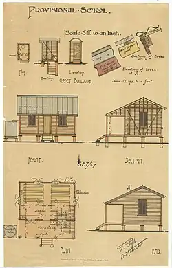 In 1869 the Board provided provisional schools. These represented one of the earliest efforts to tackle a perennial problem of Queensland education - how to provide basic education to a scattered population with a limited education budget. Because they could be opened with as few as 15 children (reduced later to 12), provisional schools were a means of providing education in areas where the expense of a full state school was unjustified, or where the local people were unable to raise the necessary contributions towards a state school. The local people were responsible for providing a suitable building, and provisional school buildings were often of a very low standard. Moreover, teachers' salaries were low, and their standards of training correspondingly poor. As their name implies, provisional schools were intended as a temporary expedient which would eventually be replaced by standard state schools. Sometimes, when a locality prospered into a large, stable settlement, this happened; often, however, the provisional school withered away as population shifted, the gold played out or the railway moved further west.[2]