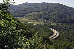 There are few findings from the transitional period between the Neolithic and the Bronze Age (2400 to 1800 BCE) in Aargau. One of the few findings is a double grave discovered near Zurzach in 1986. Between 1600 and 1200 BCE, the population increased and people started to move to higher altitudes for better protection, instead of living only in the river valleys and on the shores of Lake Hallwil. A fortified hilltop settlement on the Wittnauer Horn near Wittnau, inhabited for several centuries until the Latène period, is the best-known site from this period. Another settlement was located on the Chestenberg.[5]