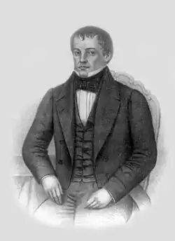 The Liberal Party which assumed power on 7 April had been only a loose coalition representing "disparate interests, united only by their opposition to Pedro I."[66] Although they were called liberals various groups within the coalition championed one or another liberal ideal while others opposed these points preferring to promote other aspects of liberalism.[67] The party soon split into two factions: the republicans (also known as the "Extremists"[68] or "Tatters"[69]) which was a small but aggressive group and the "moderate" liberals.[66] The moderate liberals consisted of a coalition of the Nativists whose main leader was the priest Diogo Antônio Feijó[66] and the Coimbra bloc–so-called because many of its supporters had graduated from Coimbra University.[70] The Coimbra bloc's main leaders were Pedro de Araújo Lima (later Marquis of Olinda) and Bernardo Pereira de Vasconcelos.[70] Vasconcelos acted not only as a leader but also as a mentor to the younger generation of his faction which included Honório Hermeto Carneiro Leão (later the Marquis of Paraná), Paulino Soares de Sousa (later the first Viscount of Uruguay) and Joaquim José Rodrigues Torres.[71]