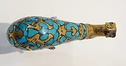 After this defeat, the soldier and adviser Lou Jing—who had previously warned the emperor of the Xiongnu's strength and suffered imprisonment for it—convinced the emperor to create a peace treaty and marriage alliance with the Xiongnu, initiating the Western Han's heqin policy.[41] By this arrangement established in 198 BCE, the Han hoped to modify the Xiongnu's nomadic values with Han luxury goods given as tribute (silks, wine, foodstuffs, etc.) and to make Modu's half-Chinese successor a subordinate to grandfather Gaozu.[42] The exact amounts of annual tribute as promised by Emperor Gaozu given to the Xiongnu in the 2nd century BCE shortly after the defeat are unknown. In 89 BCE, however, Hulugu Chanyu (狐鹿姑; r. 95–85 BCE) requested a renewal of the heqin agreement with the increased amount of annual tribute at 400,000 L (11,350 U.S. bu) of wine, 100,000 L (2,840 U.S. bu) of grain, and 10,000 bales of silk; thus previous amounts would have been less than these figures.[43]