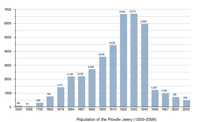 | 1,153 (2021 census)[1] – 6,000 Bulgarian citizens of full or partial Jewish descent (according to OJB estimates) | |