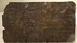 Tondo was a major trade hub on Luzon island in the northern part of the Pasig River delta. The earliest historical record of local polities and kingdoms, the Laguna Copperplate Inscription, indirectly refers to the Tagalog polity of Tondo (c. before 900–1589) and two to three other settlements believed to be located somewhere near Tondo, as well as a settlement near Mt. Diwata in Mindanao, and the temple complex of Medang in Java.[82] Although the precise political relationships between these polities is unclear in the text of the inscription, the artifact is usually accepted as evidence of intra- and inter-regional political linkages as early as 900.[82][64][15] By the arrival of the earliest European ethnographers during the 1500s, Tondo was led by the paramount ruler called a "Lakan".[64][15] It had grown into a major trading hub, sharing a monopoly with the Rajahnate of Maynila over the trade of Ming dynasty[83] products throughout the archipelago.[64] This trade was significant enough that the Yongle Emperor appointed a Chinese governor named Ko Ch'a-lao to oversee it.[84][85]