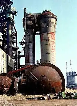Sign of economic change: in 1983, in spite of seemingly successful protests by employeess, steel production at the Krupp works in Duisburg-Rheinhausen were shut down.