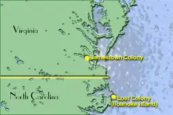 In 1585, an expedition organized by Walter Raleigh established the first English settlement in the New World, on Roanoke Island in North Carolina. The colony failed to prosper, however, and the colonists were retrieved the following year by English ships. In 1587, Raleigh again sent out a group of colonists to Roanoke. From this colony, the first recorded European birth in North America, a child named Virginia Dare, was reported. That group of colonists disappeared and is known as the "Lost Colony". Many people theorize that they were either killed or taken in by local tribes.[16]