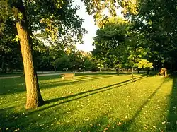 The University of Chicago's Hyde Park campus was established in 1890 through the efforts of the American Baptist Education Society and oil magnate John D. Rockefeller, who later called it "the best investment I ever made."[2] The University of Chicago held its first classes there on October 1, 1892.[3] The original tract of land, comprising the current main quads, was donated by Marshall Field, owner of the Marshall Field and Company department store. Other Chicagoans made financial donations to match Rockefeller's offer. Martin A. Ryerson (1856–1932) served as the president of the board of trustees of the University from 1892 to 1922. He donated over $2 million to the university, including $350,000 for the construction of the Ryerson Physical Laboratory, and endowed the Martin A. Ryerson Distinguished Service Professorship in 1925.[4]