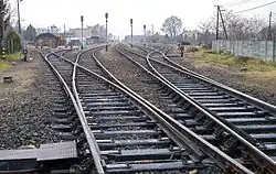 The railway track or permanent way is the elements of railway lines: generally the pairs of rails typically laid on the sleepers or ties embedded in ballast, intended to carry the ordinary trains of a railway. It is described as a permanent way because, in the earlier days of railway construction, contractors often laid a temporary track to transport spoil and materials about the site; when this work was substantially completed, the temporary track was taken up and the permanent way installed.