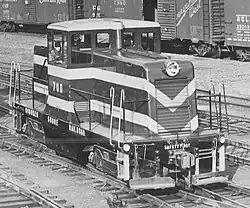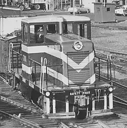 By 1911 the railroad had four electric locomotives in operation, and switched between 100 and 150 cars daily.[12] Electric operation was ceased in the 1930s when the GE boxcab diesel locomotives arrived.[13] 1938 brought an Alco HH660 series locomotive and 1947 two GE 44 ton switchers.