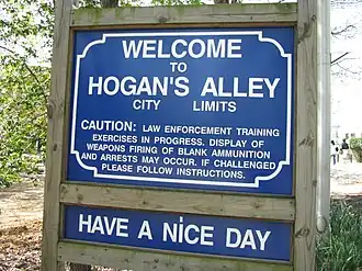 Hogan's Alley is a Federal Bureau of Investigation training facility operated by the FBI Academy in Marine Corps Base Quantico near Quantico, Prince William County, Virginia. Opened in 1987, Hogan's Alley is a full-scale replica of a nondescript town in the United States, spread over approximately 10 acres (4 ha). The facility is used to train federal law enforcement agents in realistic urban environments that cannot be fully emulated by, or would not be fitting in, traditional training facilities such as kill houses. The "Hogan's Alley" name originated from Hogan's Alley, a popular 1890s comic strip by Richard F. Outcault that centered around the titular fictional slum alley in New York City.[1]