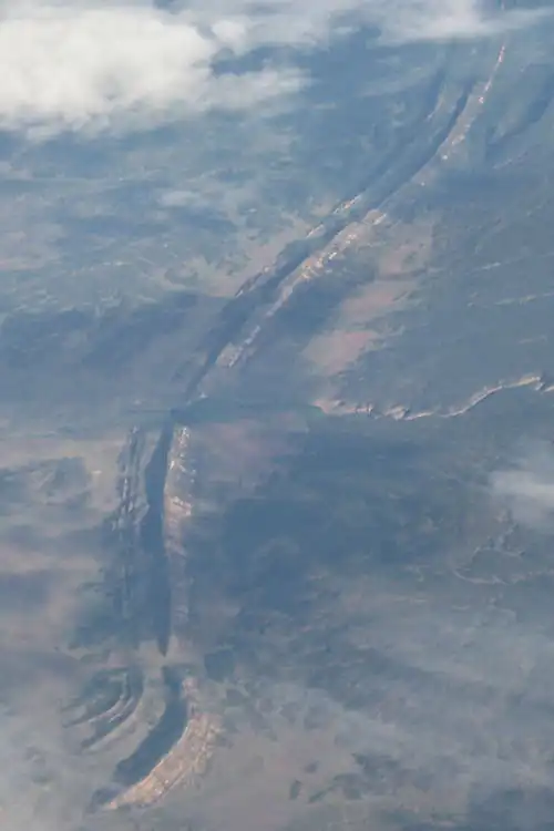The Grand Hogback is a 70-mile long (110 km) ridge located in western Colorado.[7] It marks part of the boundary between the Colorado Plateau to the west and the Southern Rocky Mountains to the east.[8]