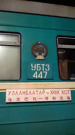 - ^ "中国铁路呼和浩特局集团有限公司关于呼和浩特~乌兰巴托间旅客列车恢复开行的公告". 中国铁路12306. Archived from the original on 2024-03-19. Retrieved 2024-03-19.