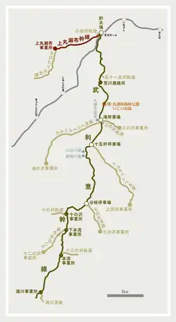 The rails with a gauge of 2 ft 6 in (762 mm) were laid in the forest park west-south of Engaru. In 1980, former Maruseppu town office (present Maruseppu branch office of Engaru town office) laid this railway on the site of a part of Murii Forest Railway (Murii Shinrin Tetsudō, 武利意森林鉄道) line with construction of forest park. In addition to the narrow-gauge railway there is the Maruseppu local history museum, the Maruseppu insects museum, the Maruseppu thermal spring "Yamabiko" and a campsite.[1][2]