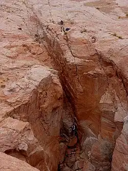 Hole in the Rock is a narrow and steep crevice in the western rim of Glen Canyon, in southern Utah in the western United States. Together with another canyon on the eastern side of the Colorado River, it provided a route through what would otherwise be a large area of impassable terrain.