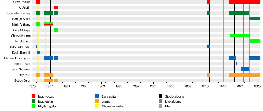 | Scott Phares | 1973–1974, 2013, 2018–present | Lead vocals, songwriter |