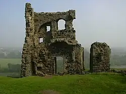 Hugo Arnot suggested in the 18th century that the name Salisbury Crags derives from the first Earl of Salisbury, who accompanied Edward III of England on one of his invasions of Scotland.[7] James Grant's view of this in 1880 is that it was "an idle story", and quoted Lord Hailes' derivation from Anglo-Saxon meaning "waste or dry habitation".[8] The modern Gaelic name of the cliffs is Creagan Salisbury, a direct translation of the English; however in 1128, the cliffs were described in a charter under an older Gaelic name, Creag nam Marbh (the Crag of the Dead).[9][10]