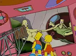 ![]() Bart and Lisa see Homer's painting, a parody of Michelangelo's The Creation of Adam. | |