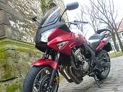 The CBF600 is a middleweight motorcycle made by Honda until 2013. There are 2 models in the family, CBF600N is the 'naked' version and CBF600S is the half faired one, the differences consisting just in the front fairing and headlamp block